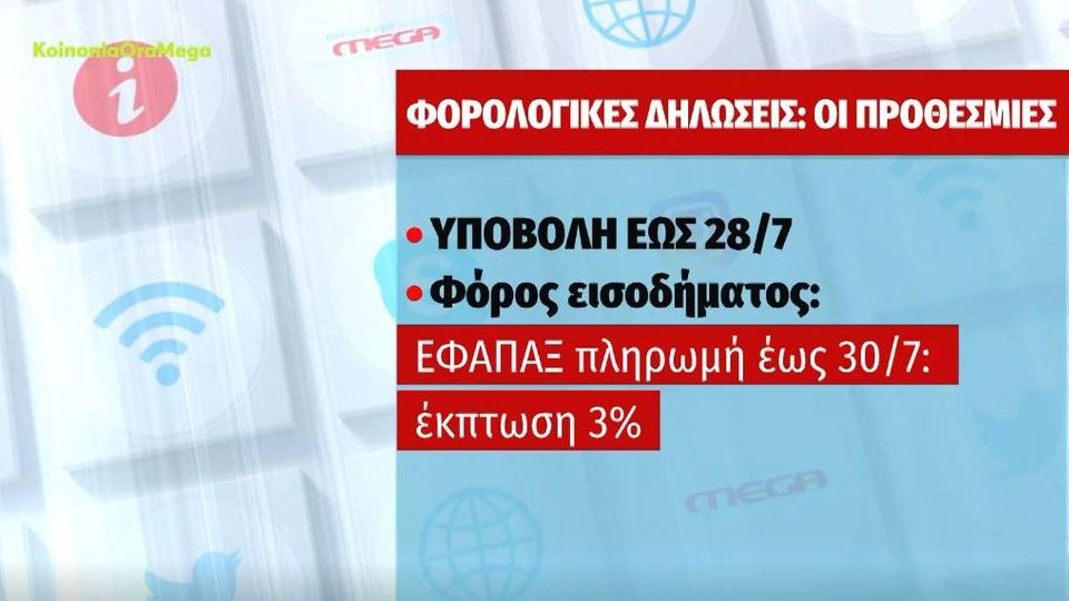 Μπορείτε επίσης να χρησιμοποιήσετε τα περιεχόμενα που βρίσκονται πάνω δεξιά στις επιμέρους σελίδες της εφαρμογής ή τα βέλη προηγούμενο & επόμενο. Για την καλύτερη ενημέρωσή σας σχετικά με τις φορολογικές δηλώσεις του 2021, δημιουργήσαμε αυτήν την ειδική ενότητα στην οποία μπορείτε να βρείτε τα τελευταία νέα καθώς και όλες τις αποφάσεις του υπουργείου οικονομικών σχετικά με τις φετινές. 3:38 μμ, πέμπτη 27 μάι 2021 3:38 μμ, πέμπτη 27 μάι 2021 οικονομία άνοιξε το taxisnet για την υποβολή φορολογικών δηλώσεων για το φορολογικό έτος 2020, όπως είχε προαναγγείλει ο υπουργός οικονομικών , χρήστος. Νέα παράταση μέχρι τέλος σεπτεμβρίου προτείνει το οεε Υπό κανονικές συνθήκες για τα φυσικά πρόσωπα οι δόσεις ήταν τρεις.